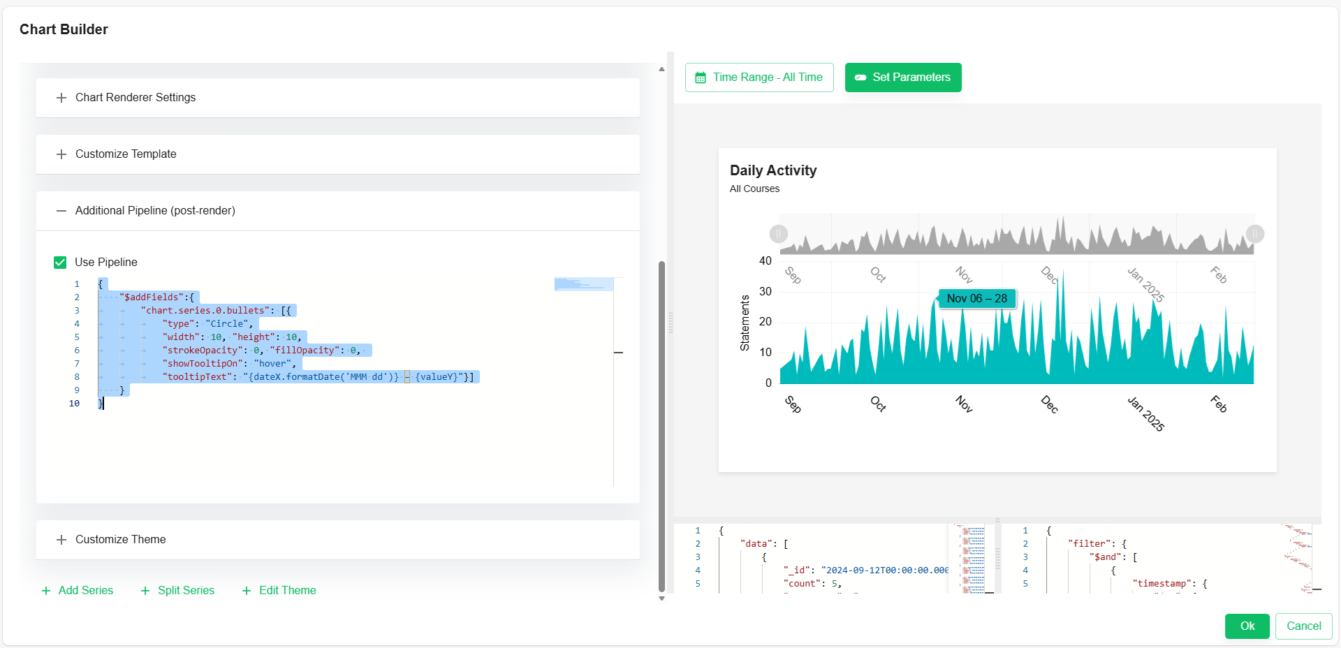 - When you're filling-in the Chart Builder for a custom Timeseries chart, scroll down to the bottom of the Series Editor form on the left.