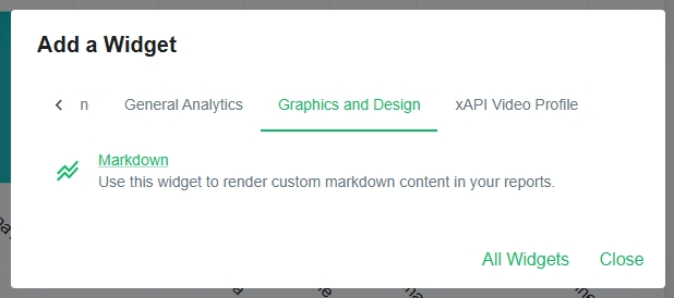 The Markdown widget lets you enter text and apply presentation styles to it, to help describe your custom dashboard. The widget accepts