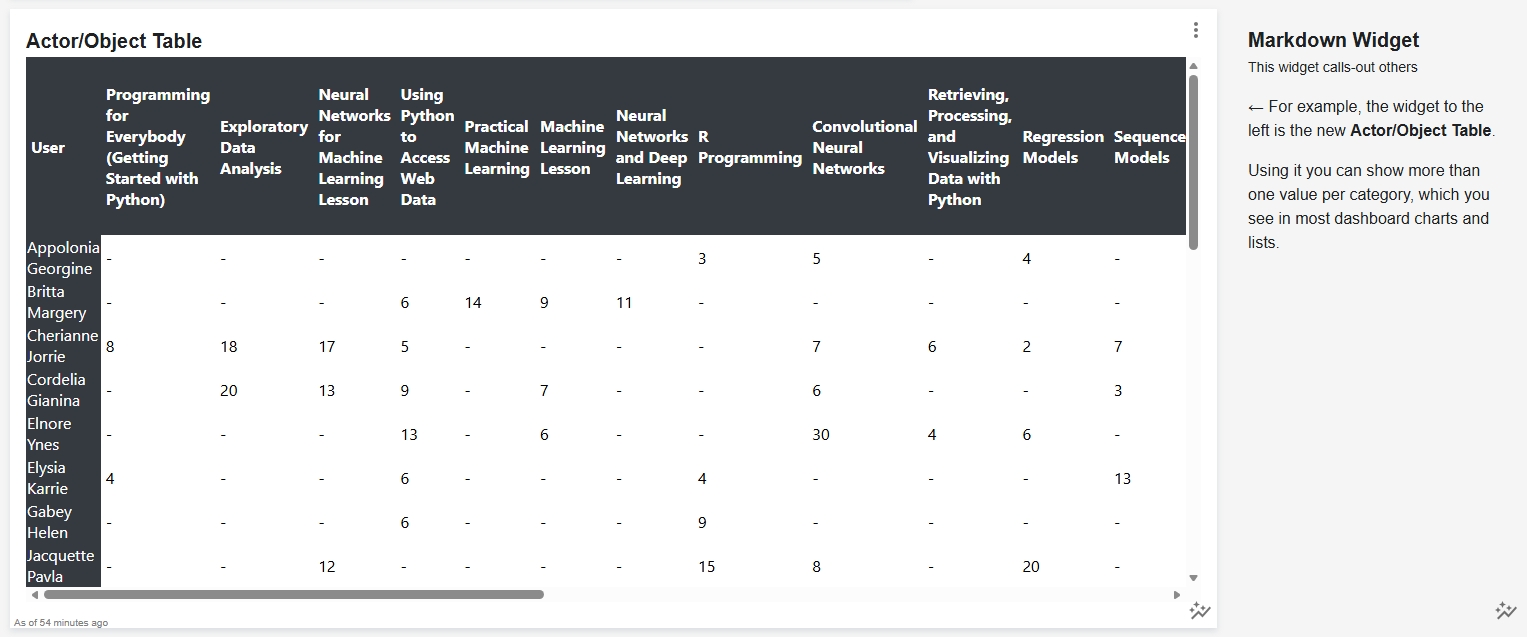 ← For example, the widget to the left is the new **Actor/Object Table**...
